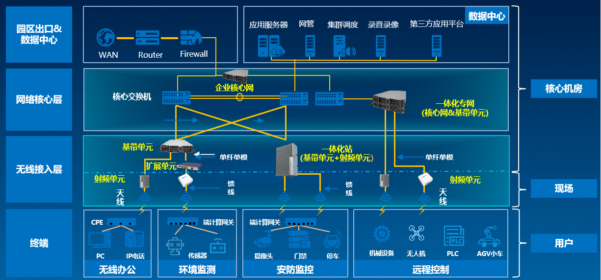 随着数字化转型的深入,移动通信技术正与人工智能、物联网、云计算、大数据、边缘计算等技术深度融合,加速各行各业向数字化、网络化、智能化转型,开启数字经济的新时代。易彩堂app新一代通信移动专网基于3GPP协议内定义的标准化接口设计并互联互通,采用先进开放的架构平台、灵活智能的组网方案,设计研发支持不同厂家的射频单元、CU/DU分离、云原生和Option 2的架构,支持AES、Snow3G、ZUCC等三种加密和完保算法,支持E2接口和SON(自组织网络)等功能,具备云化、简单、智能、柔性等特点,提供统一云网管理运维平台,为行业客户带来高质量高安全的业务体验。