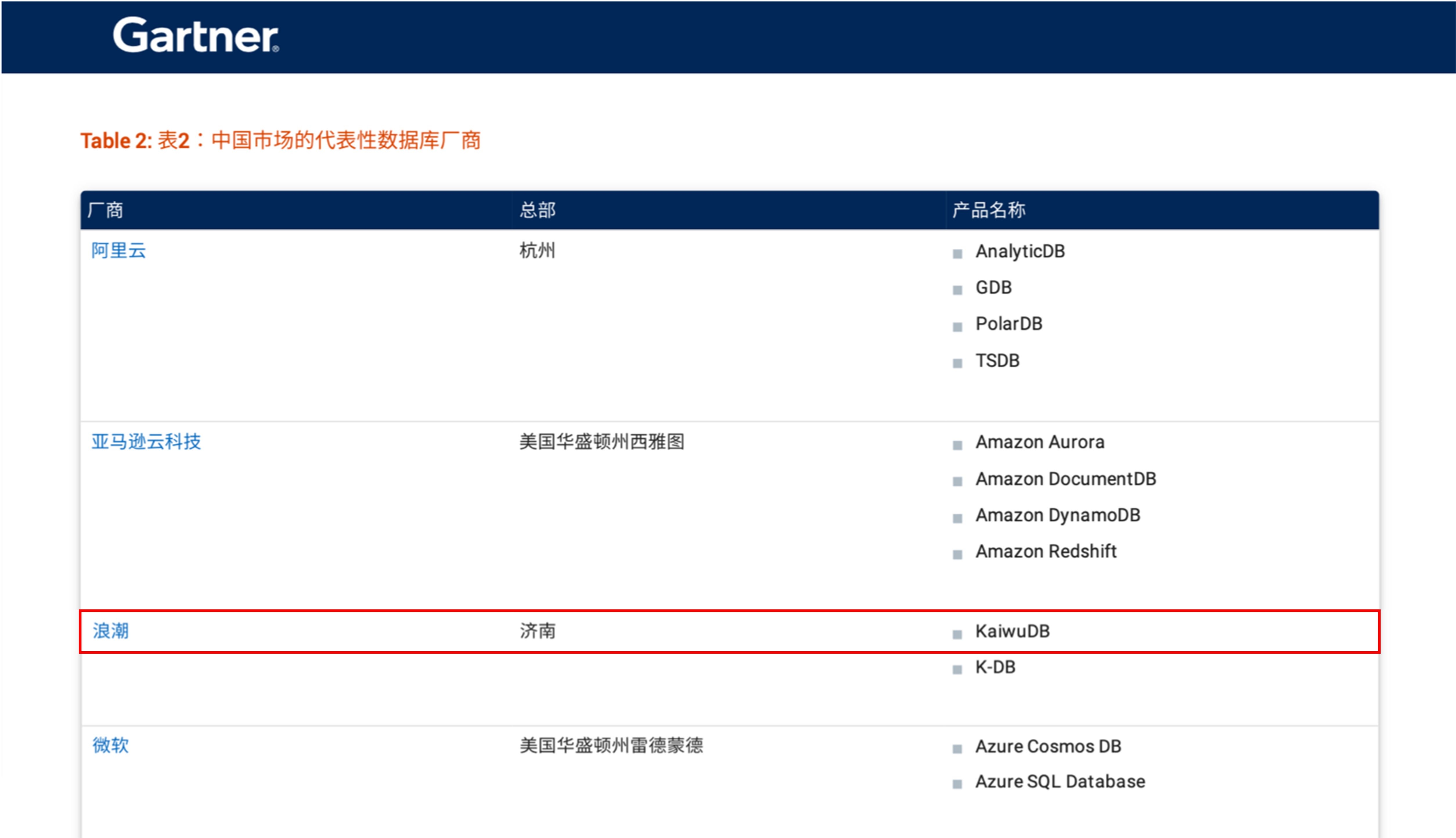 KaiwuDB 入选 Gartner 中国数据库管理系统代表厂商